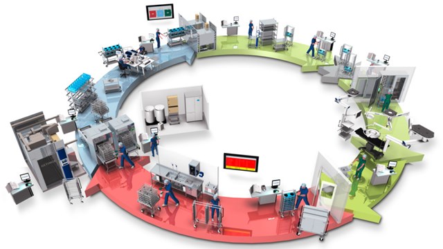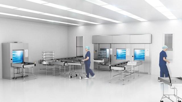 Das empfohlene AEMP-Design umfasst drei Bereiche und zwei Barrieren, um Kreuzkontaminationen zu vermeiden. Die Bereiche werden durch Reinigungs- und Desinfektionsanlagen und Sterilisatoren mit Durchreichefunktion voneinander getrennt. So werden schmutzige, saubere und sterile Bereiche getrennt. Dies sorgt nicht nur für Hygienesicherheit und maximale Produktivität, sondern schafft darüber hinaus ein besseres Arbeitsumfeld für das Personal.