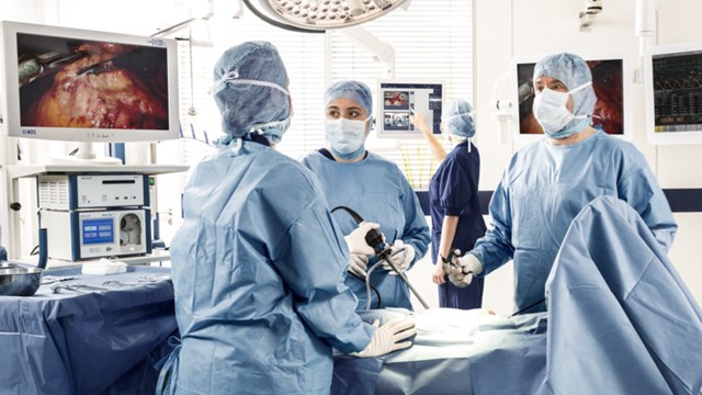 - Die Größe des Operationssaals für endoskopische Eingriffe sollte etwa 40 m² betragen.